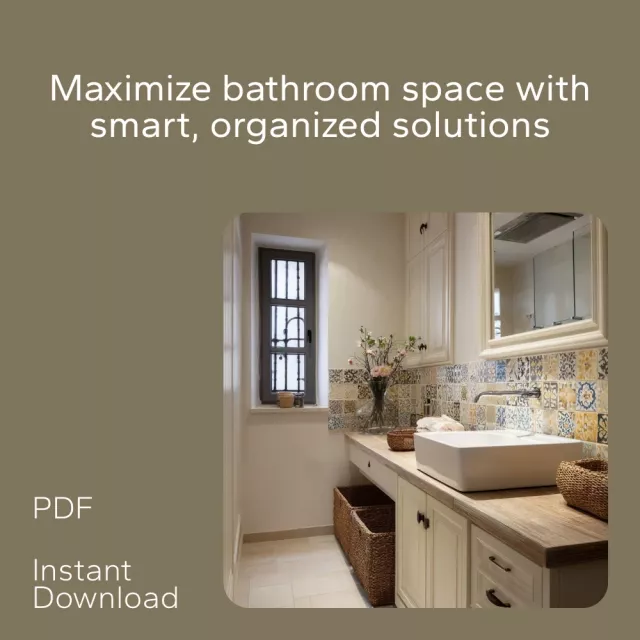 Are you struggling to organize your small bathroom in a way that makes the most of every inch of space? The Space-Smart Bathroom Organization Pack is here to help! This 3-in-1 digital download bundle includes practical guides, checklists, and expert tips on how to organize a small bathroom efficiently. Whether you’re tackling cramped cabinets, cluttered drawers, or limited floor space, these resources are designed to help you create a functional and stylish bathroom, no matter the size. Get ready to enjoy a bathroom that’s as organized as it is beautiful!